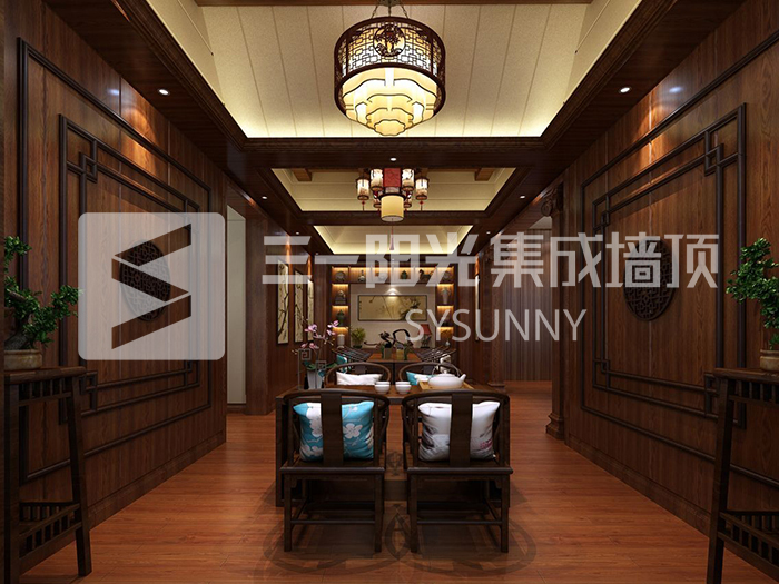 中国风体现:在中国千年的传统文化上,中式风格的家装一直在人类家居文化中有独特的魅力。三一阳光集成墙面在墙面材料的制造工艺中整理出头绪,在中国风广受欢迎的今天,三一阳光集成墙面将中式元素与现代材质的巧妙结合,再通过中式家具、窗棂、布艺床品的相互辉映,再现了传统中式家装风味。