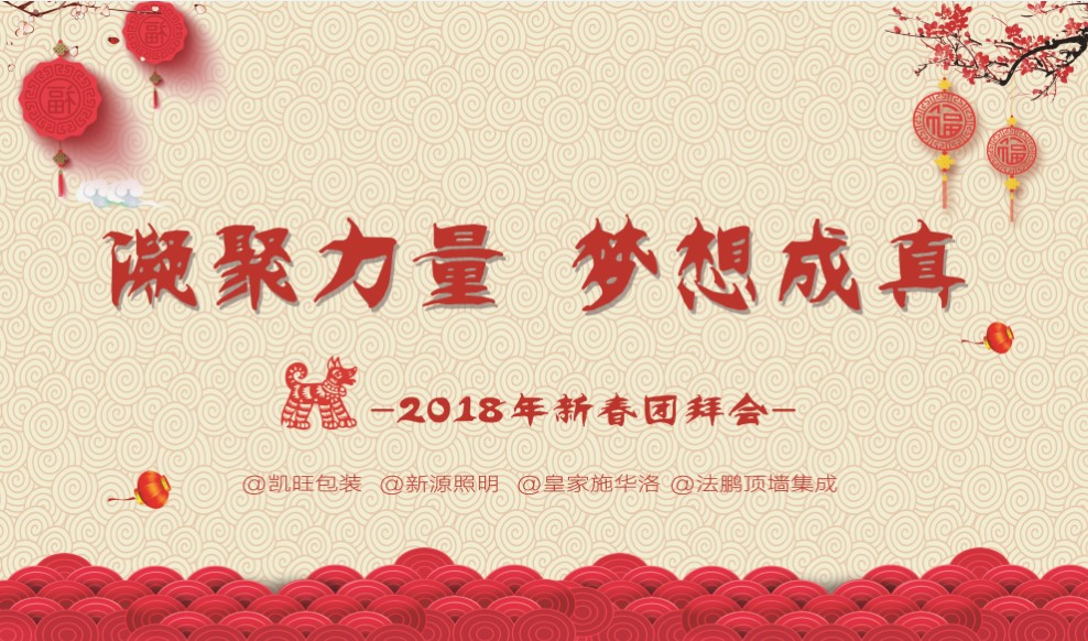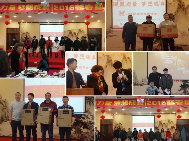 九州日月开春景,四海笙歌颂狗年。1月21日,法鹏顶墙集成联合凯旺包装、新源照明、皇家施华洛在海盐祝家庄举行2018年新春团拜会,现场歌舞升平、济济一堂,好不热闹!来自公司各条战线的家人、员工们载歌载舞,共同欢庆这一年一度的美好时刻,歌声表达的是美好生活的向往和辛苦一年的自我赞扬;舞蹈是对公司欣欣向荣发展的献礼。现场还有激动的人心的幸运大抽奖,各大奖项的名花归主,也是对广大员工一年付出的一种褒奖,一是一份美好的祝福!