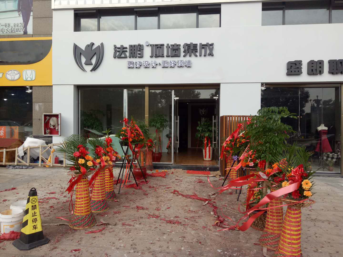 法鹏顶墙集成宁德店于11月9日盛大开业!上午,随着鞭炮声和一路的庆贺花篮,法鹏顶墙集成宁德店盛大开业!